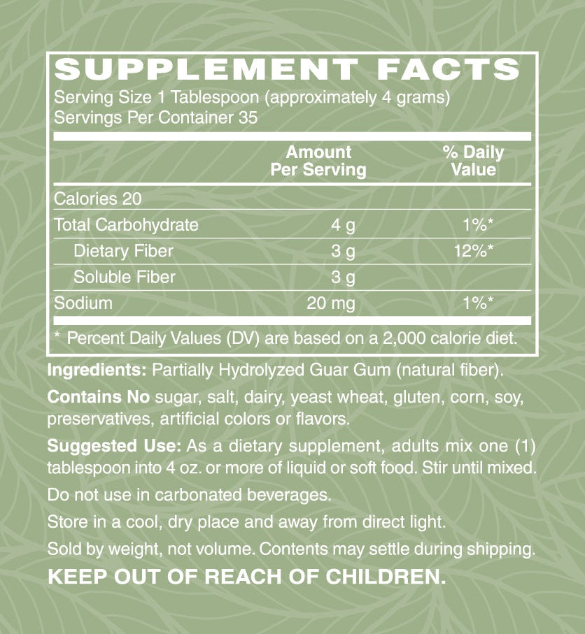 Description: Clearfiber is a soluble fiber supplement designed to support digestive health. It contains no added sugar, flavor, color, or preservatives, making it a clean and natural option for improving gut health. Research has shown that dietary fiber can promote regular bowel movements, support healthy blood sugar levels, and maintain healthy cholesterol levels. This product dissolves easily in water or other beverages and is suitable for daily use.